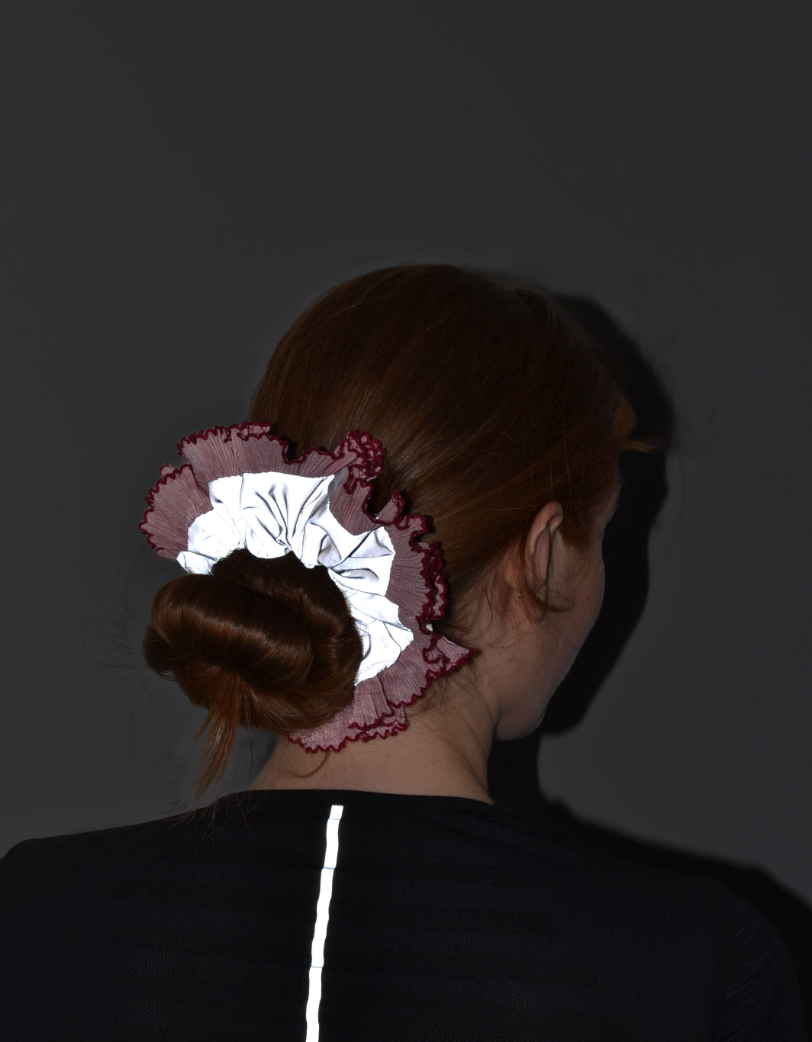 handmade in the UK from deadstock (where we can) silks to crisp cottons. Chosen with care and often sewn in limited runs. Designed to hold tight without pulling, they’re gentle on your hair, light enough for fine strands, and cute enough to double as a wrist accessory.