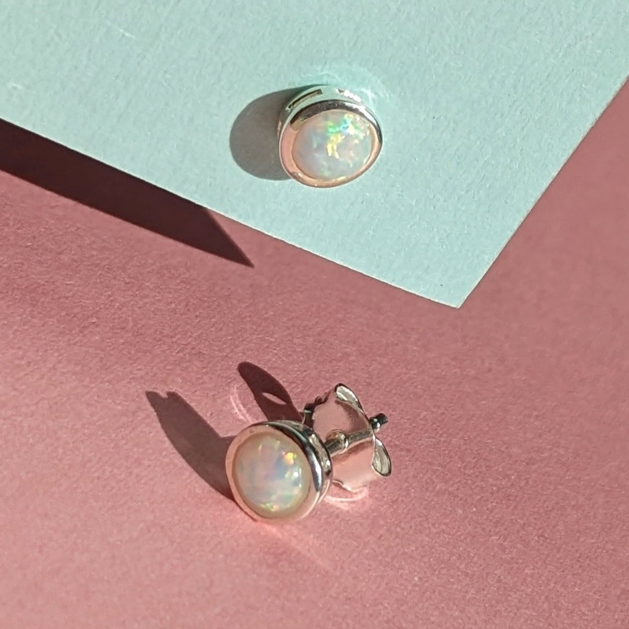 Experience the stunning beauty of our Opalite Round Silver Stud Earrings. The milky white stone reflects vibrant pastels from every angle, adding a touch of elegance to any outfit. With a sleek and stylish design, these earrings are the perfect accessory for any occasion. Elevate your look and make a statement with these must-have earrings.